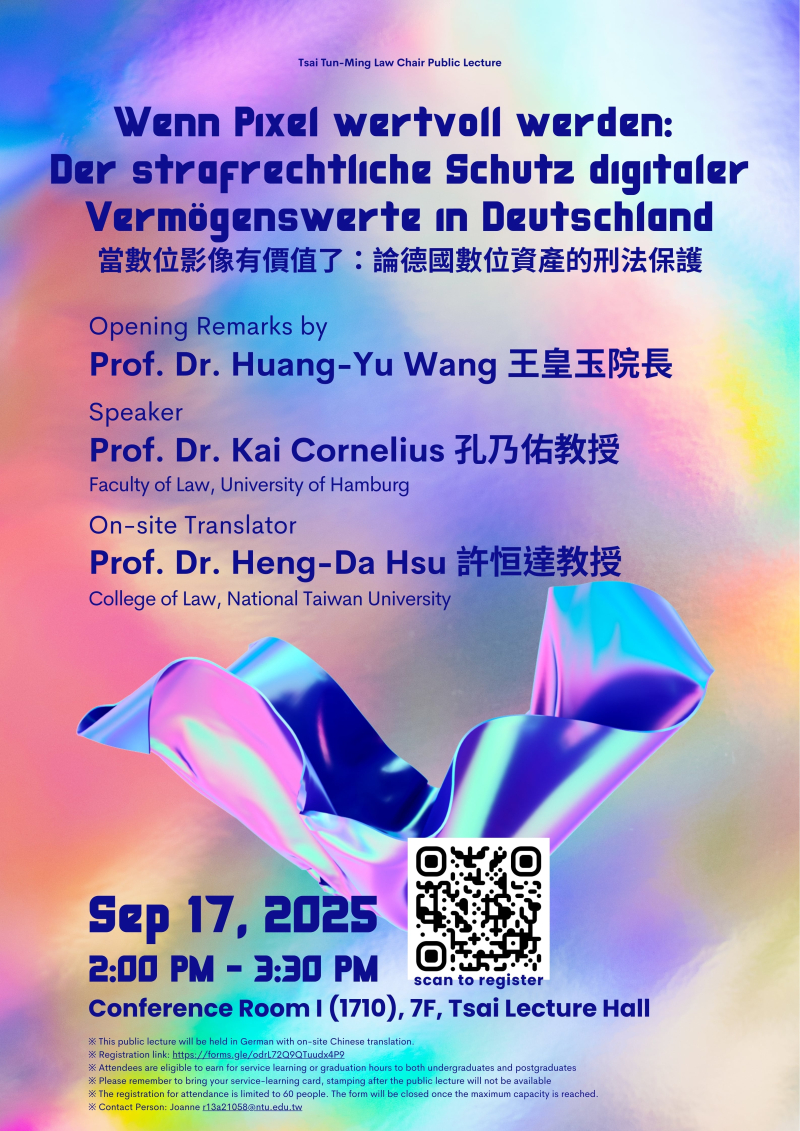 地點:國立臺灣大學法律學院霖澤館第一會議室(1710)
