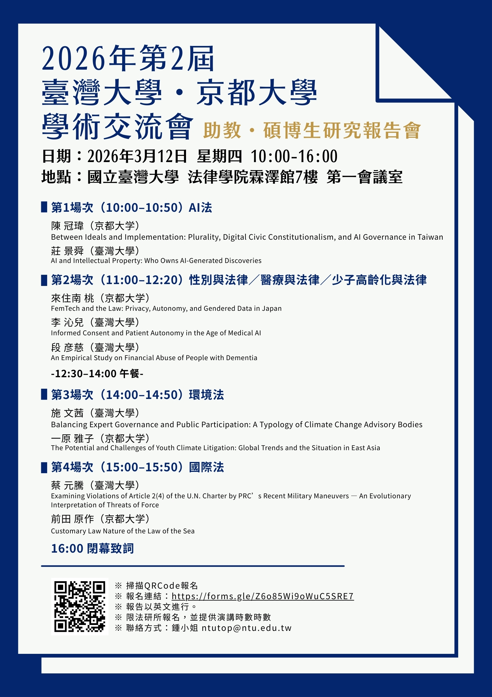 2026年第2屆 臺灣大學・京都大學 學術交流會