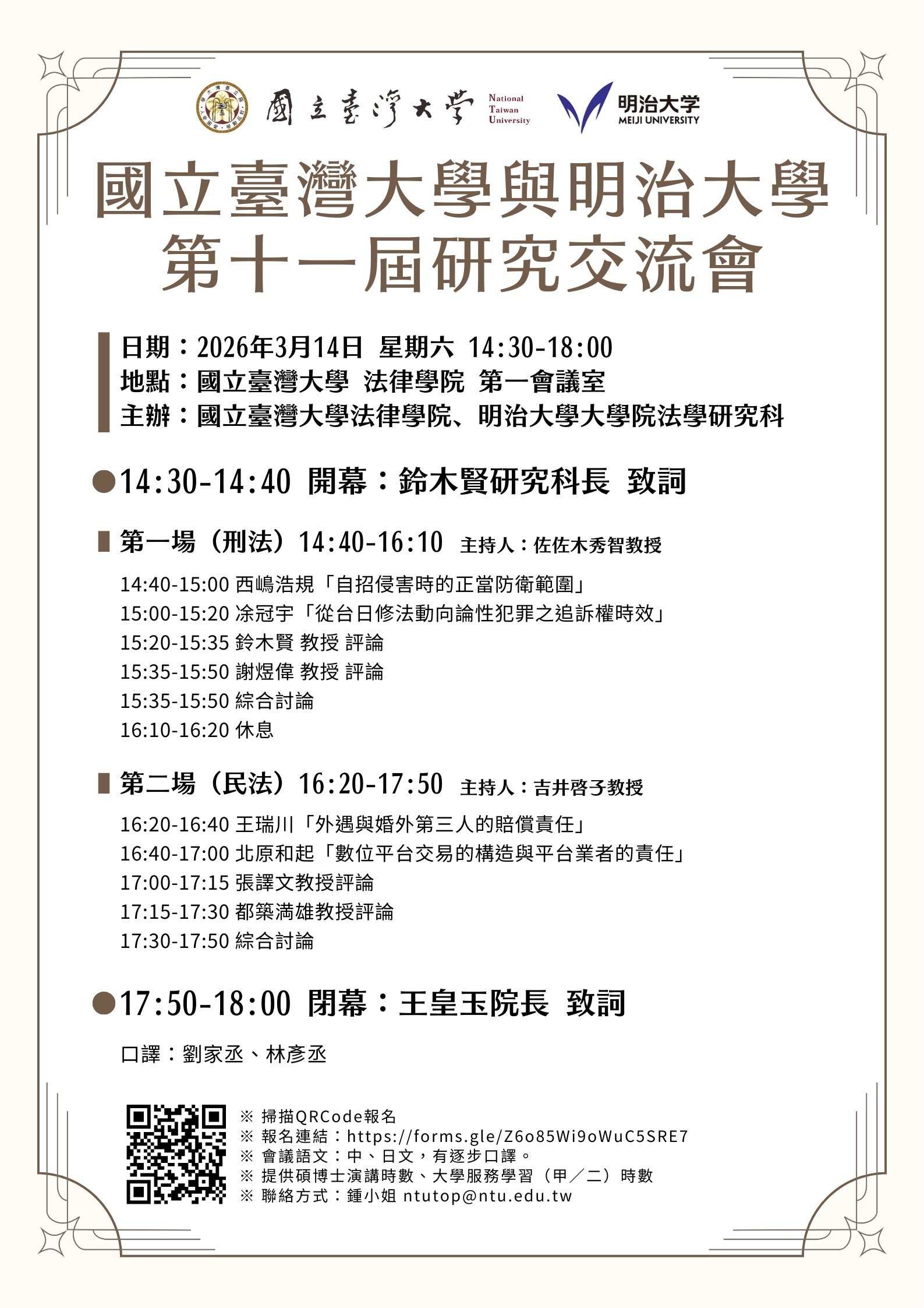 2026年 國立臺灣大學與明治大學 第十一屆研究交流會